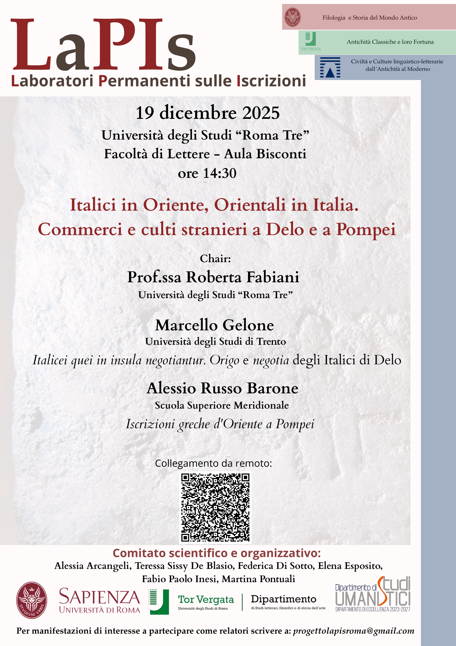 Per maggiori informazioni: progettolapisroma@gmail.com